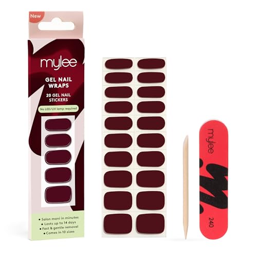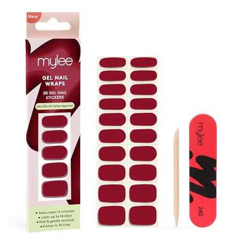 Mylee Gel Nail Wraps [Lady in Red] – 10 Pre-Cured Gel Stickers for Instant Mani – No Lamp Needed, Chip-Resistant, Glossy Finish, Lasts Up to 14 Days – Easy to Apply, Vegan & Cruelty-Free