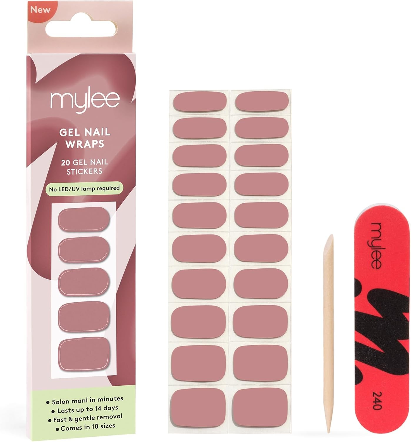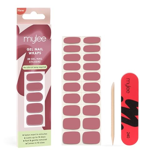 Mylee Gel Nail Wraps [Quite Delightful] – 10 Pre-Cured Gel Stickers for Instant Mani – No Lamp Needed, Chip-Resistant, Glossy Finish, Lasts Up to 14 Days – Easy to Apply, Vegan & Cruelty-Free