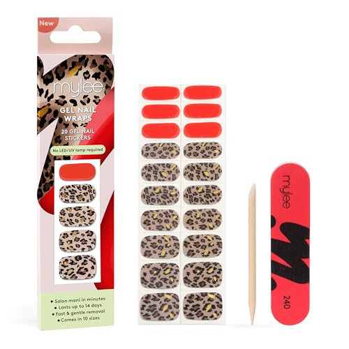 Mylee Gel Nail Wraps [Wild at Heart] – 10 Pre-Cured Gel Stickers for Instant Mani – No Lamp Needed, Chip-Resistant, Glossy Finish, Lasts Up to 14 Days – Easy to Apply, Vegan & Cruelty-Free