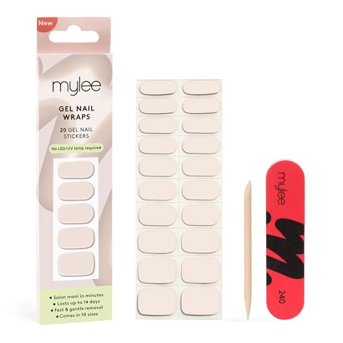 Mylee Gel Nail Wraps [Sea Shell] – 10 Pre-Cured Gel Stickers for Instant Mani – No Lamp Needed, Chip-Resistant, Glossy Finish, Lasts Up to 14 Days – Easy to Apply, Vegan & Cruelty-Free