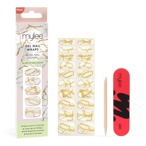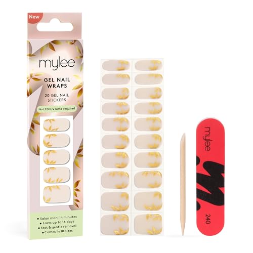 Mylee Gel Nail Wraps [Golden Era] – 10 Pre-Cured Gel Stickers for Instant Mani – No Lamp Needed, Chip-Resistant, Glossy Finish, Lasts Up to 14 Days – Easy to Apply, Vegan & Cruelty-Free