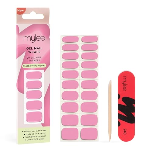 Mylee Gel Nail Wraps [Bubble Gum] – 10 Pre-Cured Gel Stickers for Instant Mani – No Lamp Needed, Chip-Resistant, Glossy Finish, Lasts Up to 14 Days – Easy to Apply, Vegan & Cruelty-Free