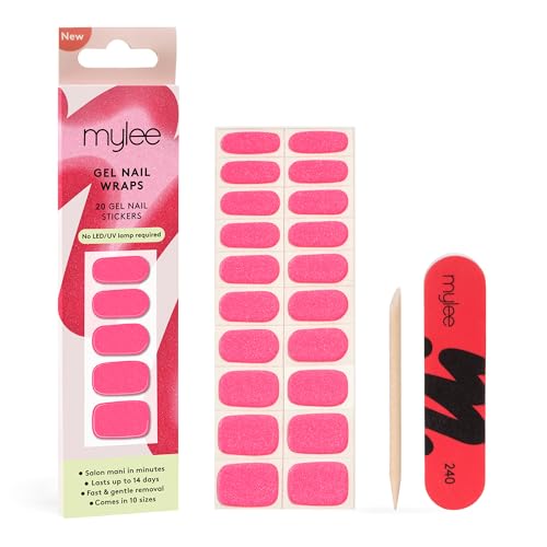 Mylee Gel Nail Wraps [Dragonfruit] – 10 Pre-Cured Gel Stickers for Instant Mani – No Lamp Needed, Chip-Resistant, Glossy Finish, Lasts Up to 14 Days – Easy to Apply, Vegan & Cruelty-Free