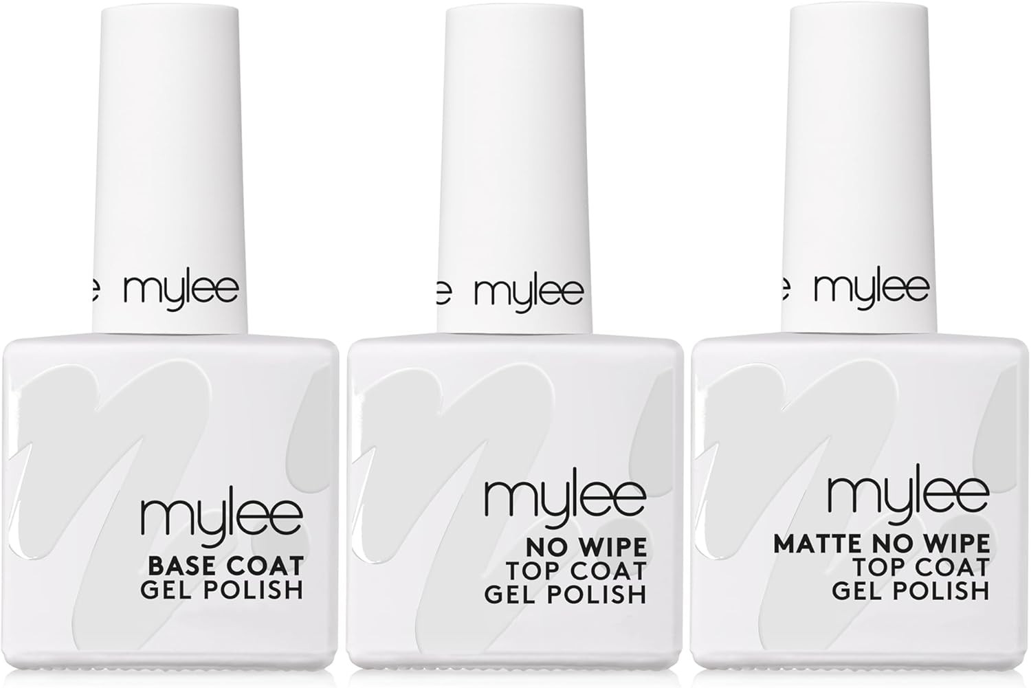 Mylee Nail Gel Polish Coat Trio Set - Matte & No Wipe Top Coats + Base Coat, 3X1