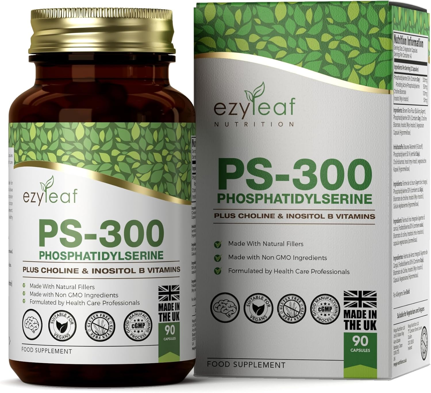 Ezyleaf Phosphatidylserine PS-300 with Choline Bitartrate & Myo-Inositol | 90 Hi