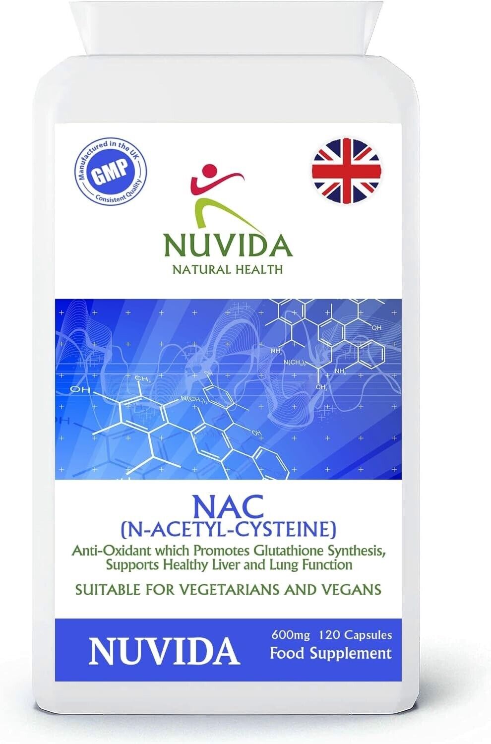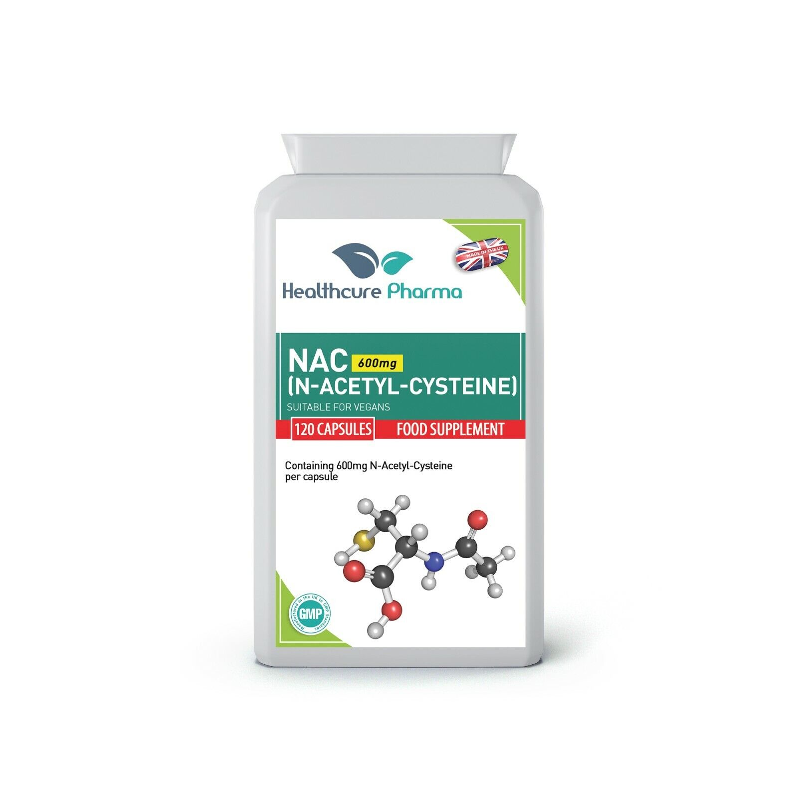 NAC N Acetyl L Cysteine 600mg 120 Capsules Amino Acid Supplement Vegan UK Made