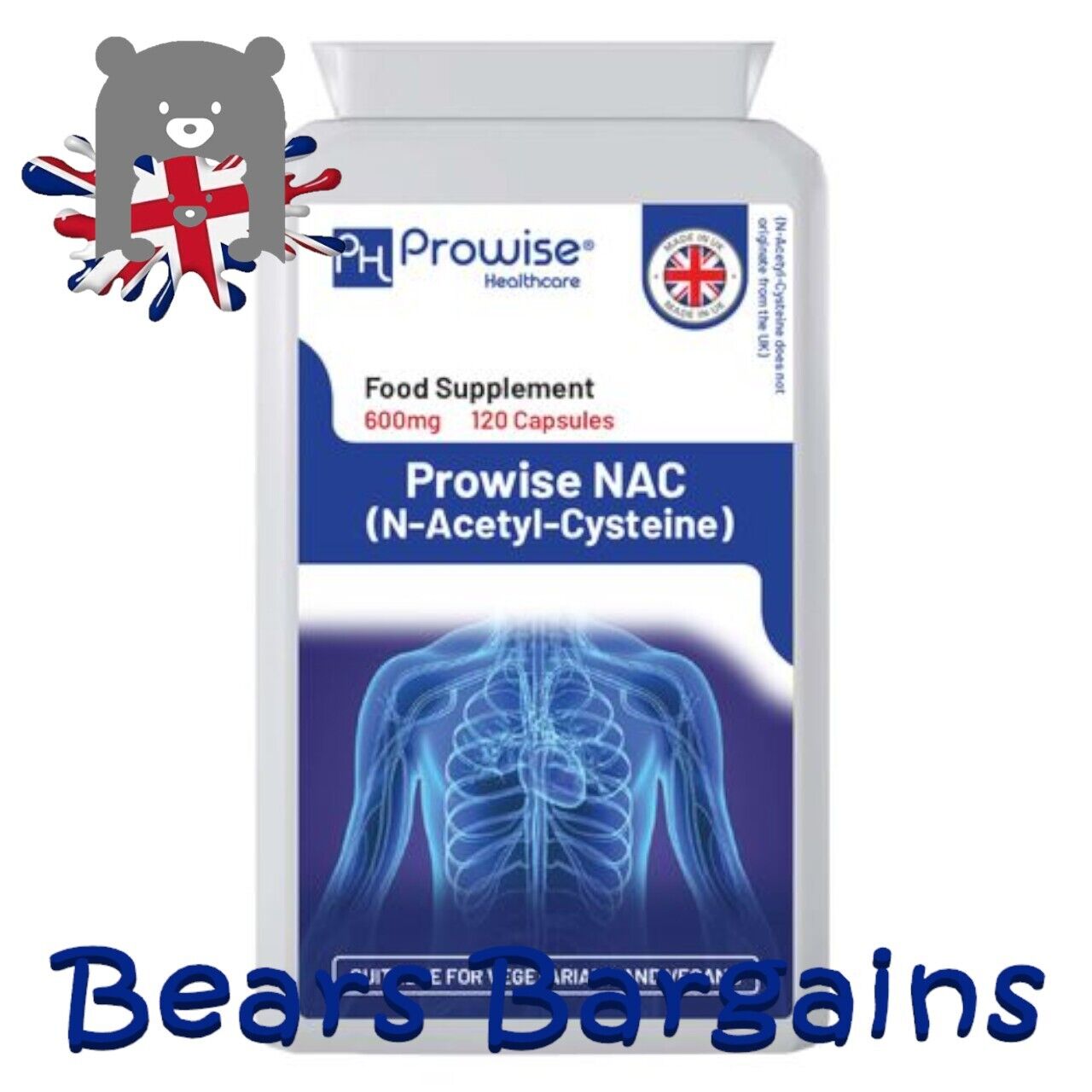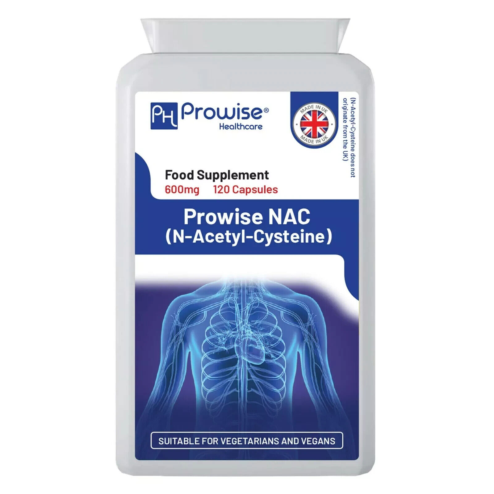 NAC N-Acetyl-Cysteine 600mg 120 Capsules - UK Manufactured | by Prowise