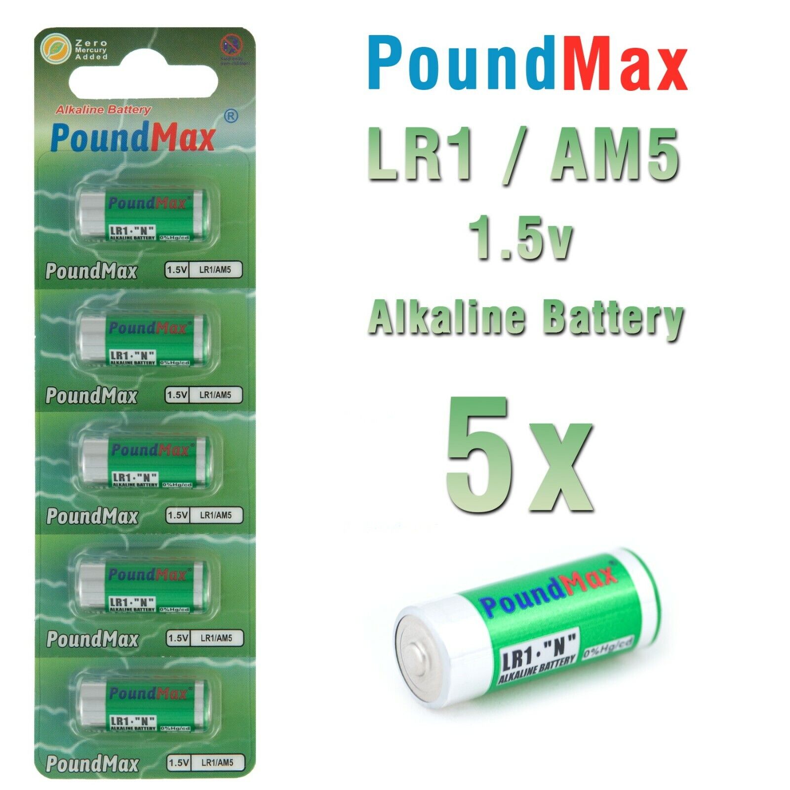 PoundMax LR1 N size 1.5V Alkaline Batteries MN9100 E90 5 x battery