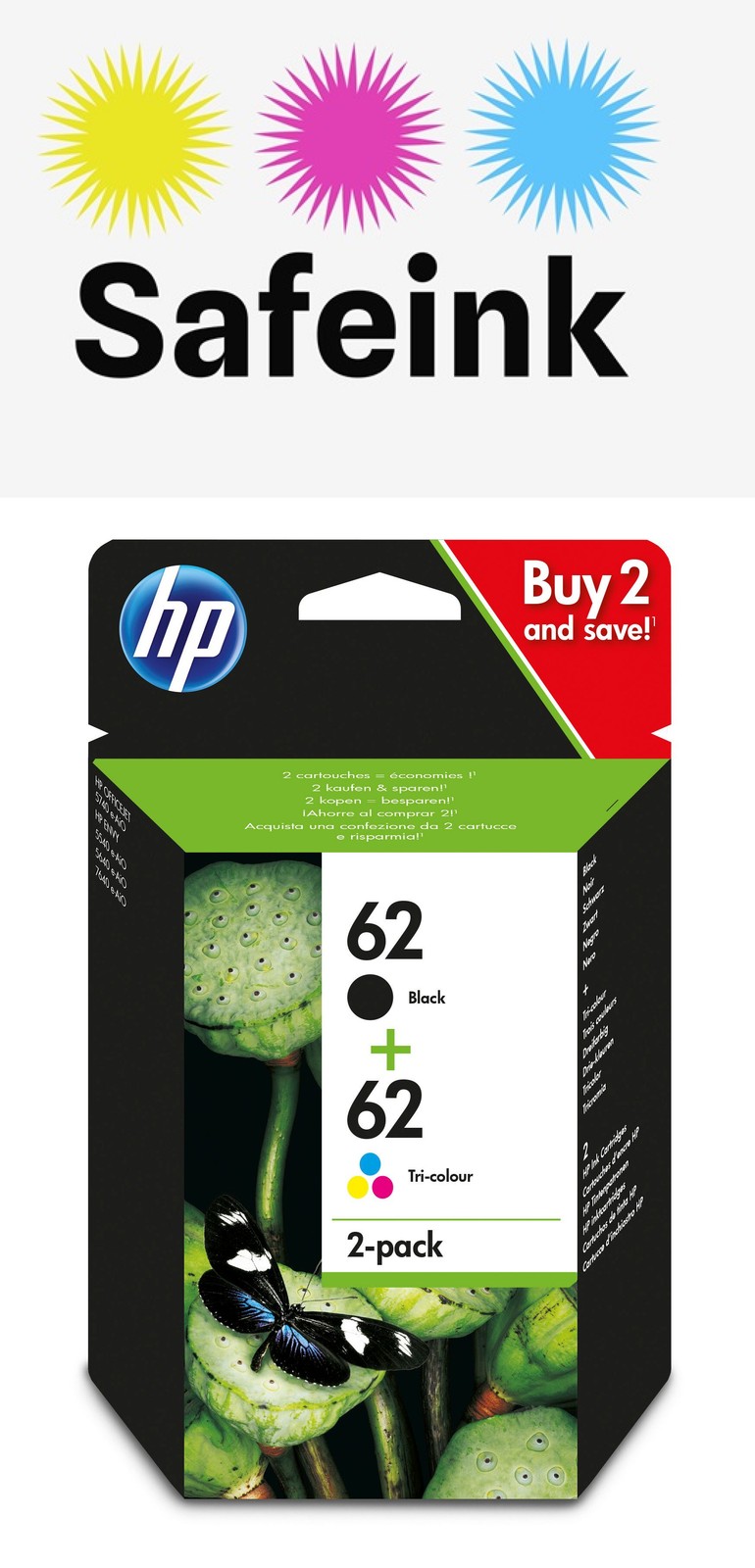 Original HP 62 2-Pack Black/Tri-colour Original Ink Combo Pack N9J71AE