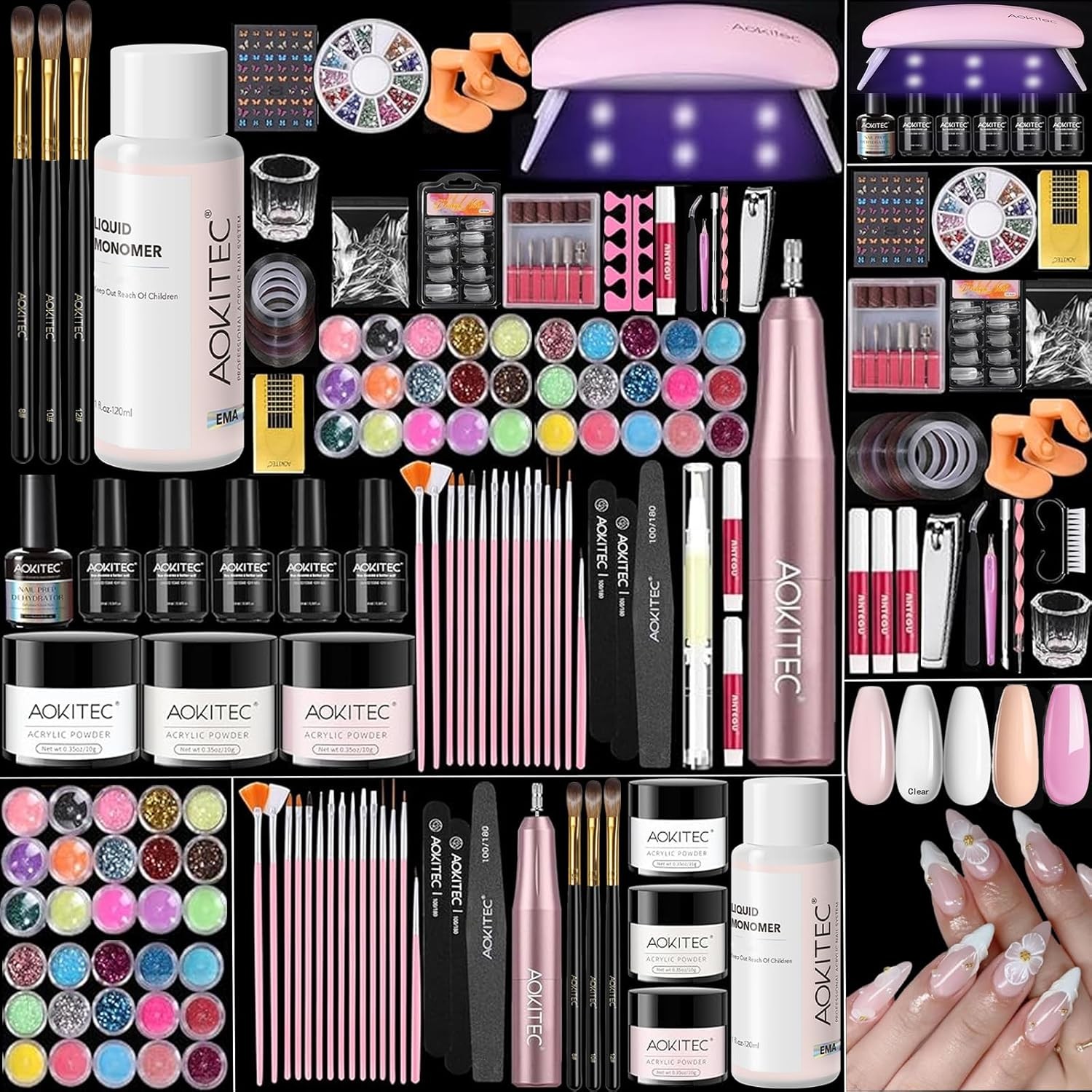 Aokitec Acrylic Nail Kit, Gift for Advent Calendar 2025, Nail Set Acrylic Kit Gel Nail Kit with Acrylic Powder Gel Polish UV Lamp Electric Nail Drill Nail Stuff, Practice Nail Art,Gift for Women Girls