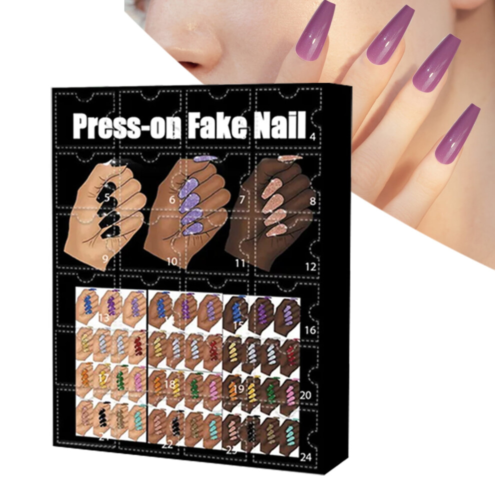 Christmas Press On Nails Advent Calendar 2024, 24 Colors Fake Nail Countdown, Artificial Nails Calendar for Women & Girls