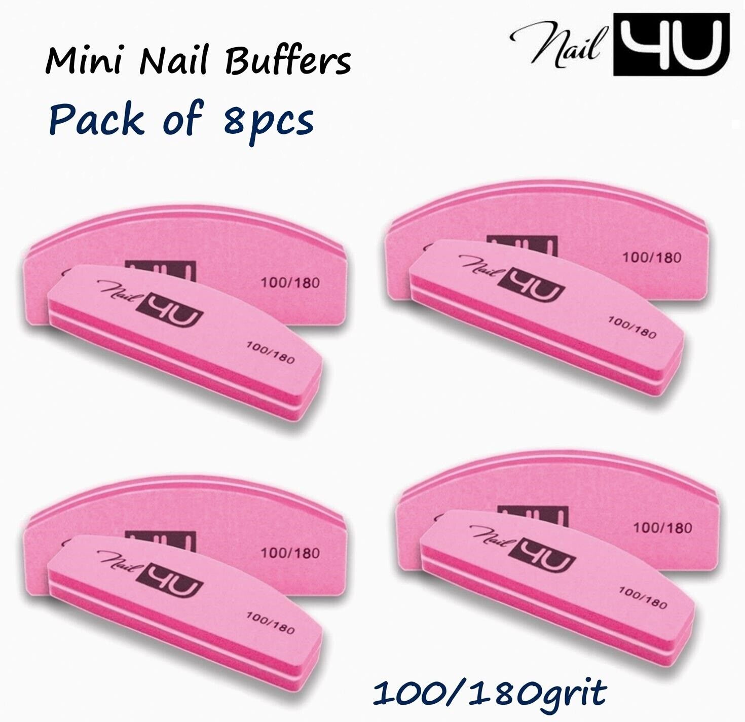 Nail Buffer Sanding Block CANDY Pink Half Moon Pack of 8 Double sided 100/180