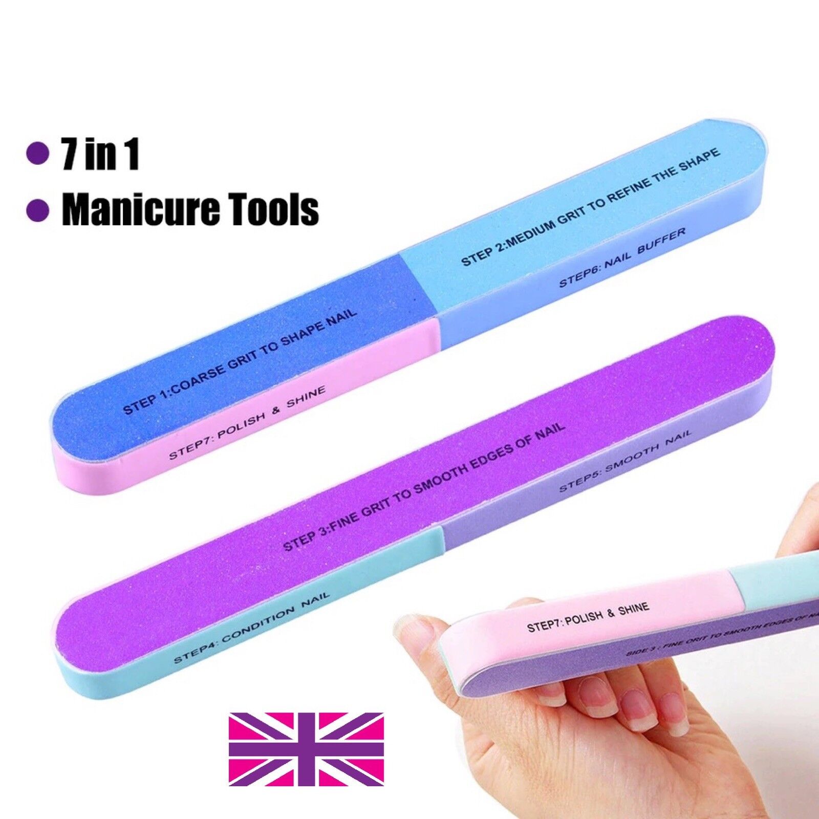 7 in 1 Nail Buffer Polishing Block File Sanding Manicure Pedicure Polish & Shine