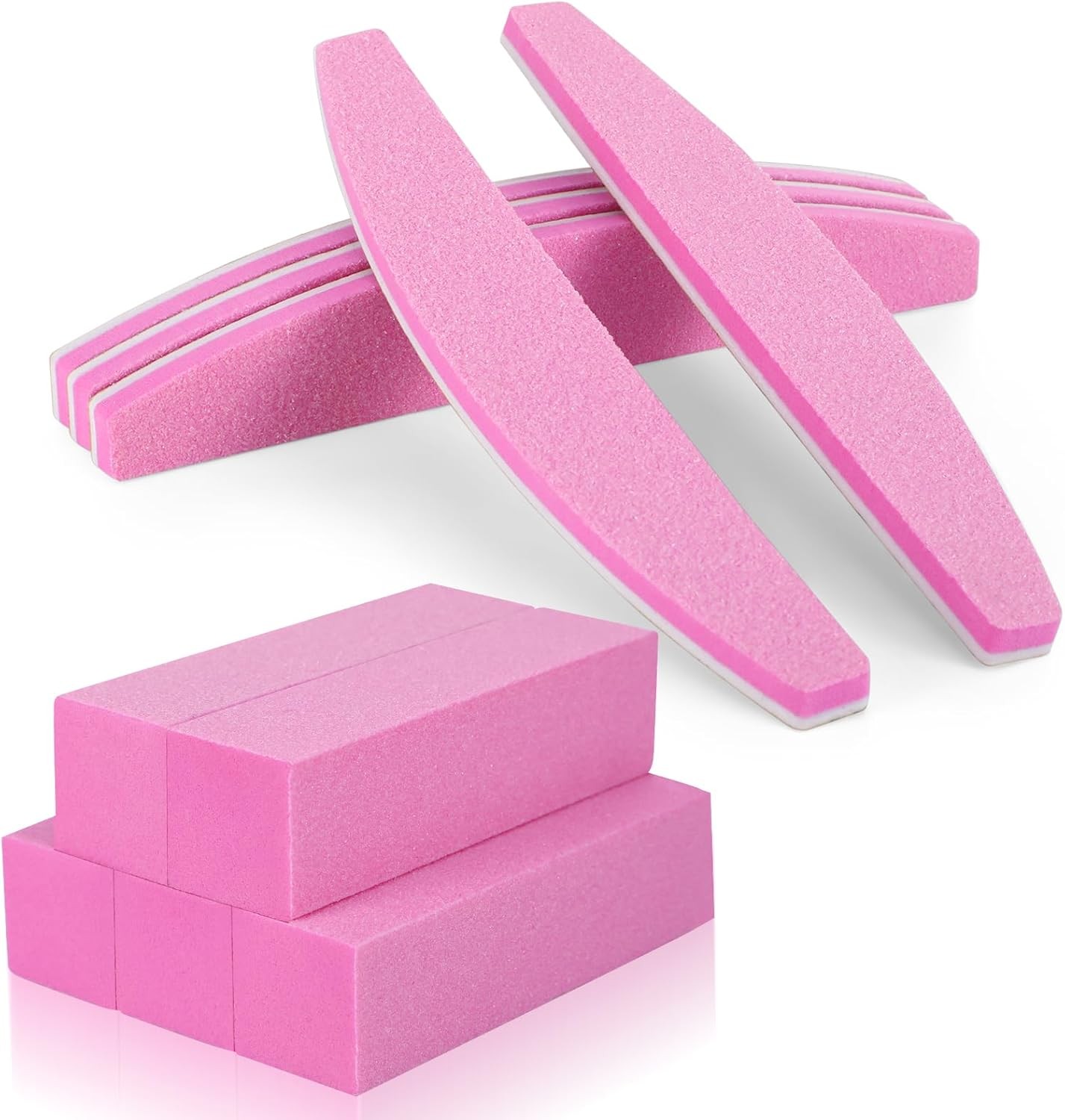 Fuyamp 10 Pcs Nail Buffer Block, Professional 120 Grit Nail Sanding Blocks for Natural Acrylic Nails, Nail Buffer Blacks Manicure Pedicure Tools for Gel Nails Salon Home Use (Pink)