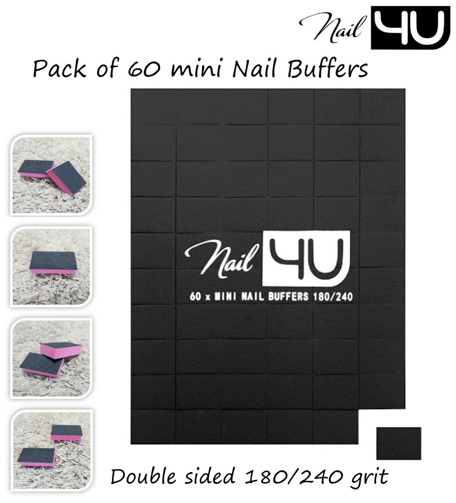 60 Mini Nail Buffer Sanding Block 180/240 grit Buffing Soft Sponge, Acrylic Gel
