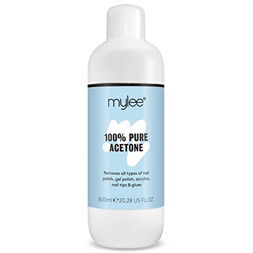 Mylee 100% Pure Acetone Gel Nail Polish Remover for UV/LED, Gel Soak Off, Removes All Types of Nail Polish, Gel Polish, Acrylic, Gels, Nail Tip & Glue (600ml)