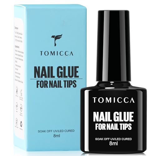 TOMICCA Gel Nail Glue, 4 in 1 Super Strong UV Nail Glue for Acrylic Nails and Press On Nails, Strong Adhesive Long Lasting and Easy to Use, 8ml