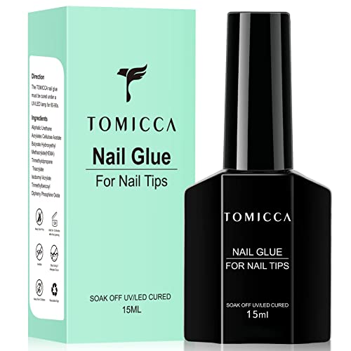 TOMICCA Gel Nail Glue - 15ml/4 in 1 Super Strong Nail Glue Compatible with Acrylic-Nails, Soft Gel Nail Tips and Press On Nails (Curing Needed), Convenient and Fast, Long Lasting and Easy to Use