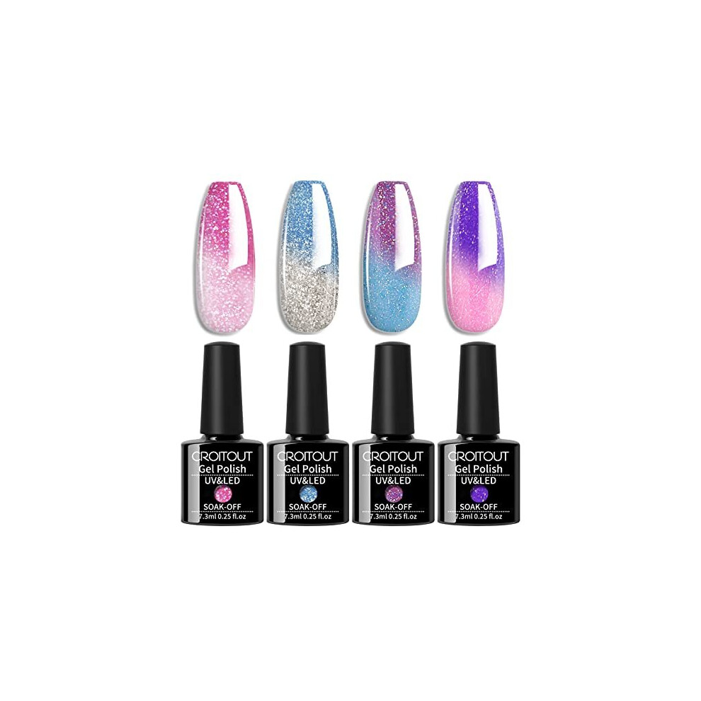 Croitout UV Gel Nail Polish Set, Colour Changing Gel Polish Colours Set, Soak off Nail Gel Polish Set, Long Lasting Glossy Shellac Nail Polish Kit,
