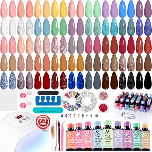 Lavender Violets 73 Pcs Gel Nail Polish Set with Lamp Starter Kit 45 Colors Full Set for Beginners Nail Primer,Base Coat,Matte&Top Coat Manicure Gel Remover Shellac UV Varnish Nail tech Suppliers LA07