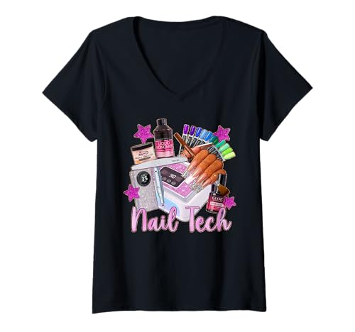 Women's Nail tech Nail Technician uv lamp Gel Salon Artist Drill tee V-Neck T-Shirt