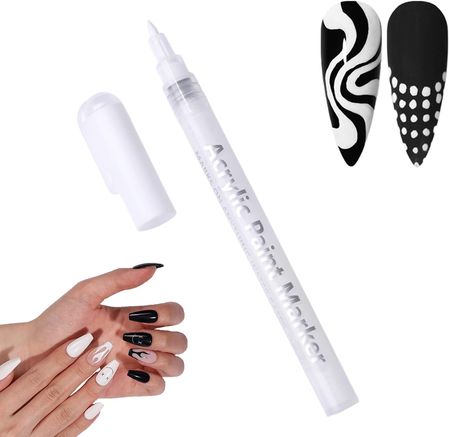 (White) Nail Graffiti Pen Nail Polish Pens Nail Art Pens Waterproof Marker Pen for DIY Home Nail Salons Silver