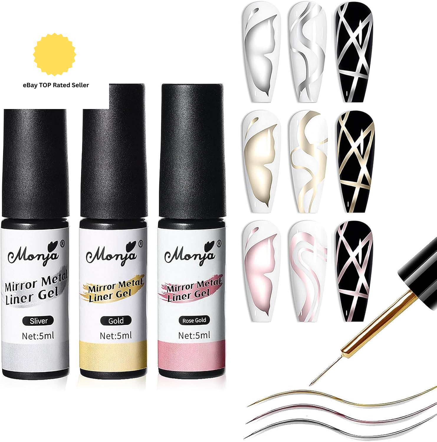 3PCS Gel Liner Nail Polish - Metallic Gel Nail Polish Pen - Glitter Rose Silver