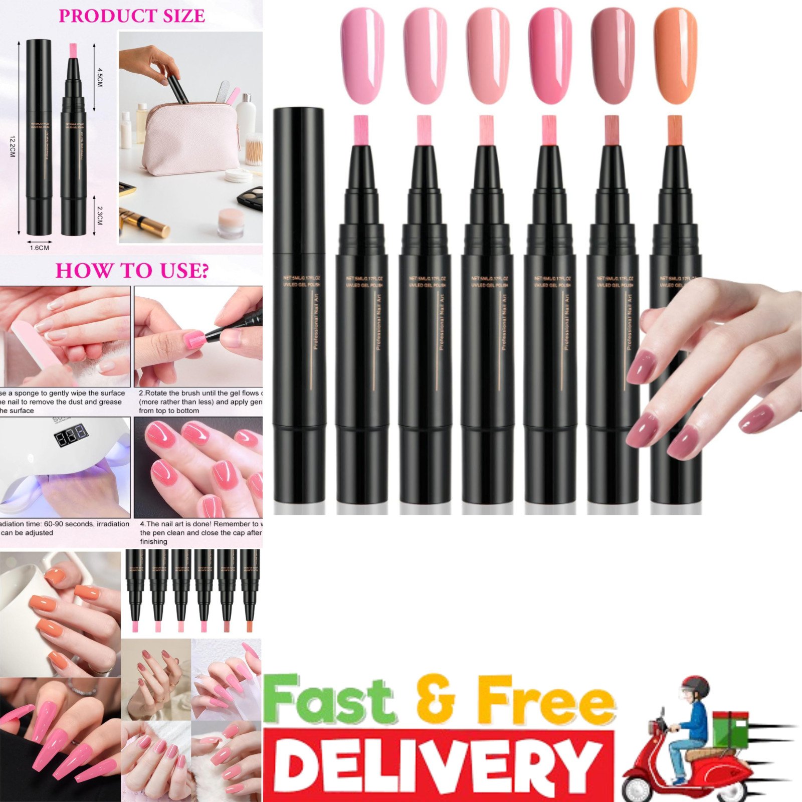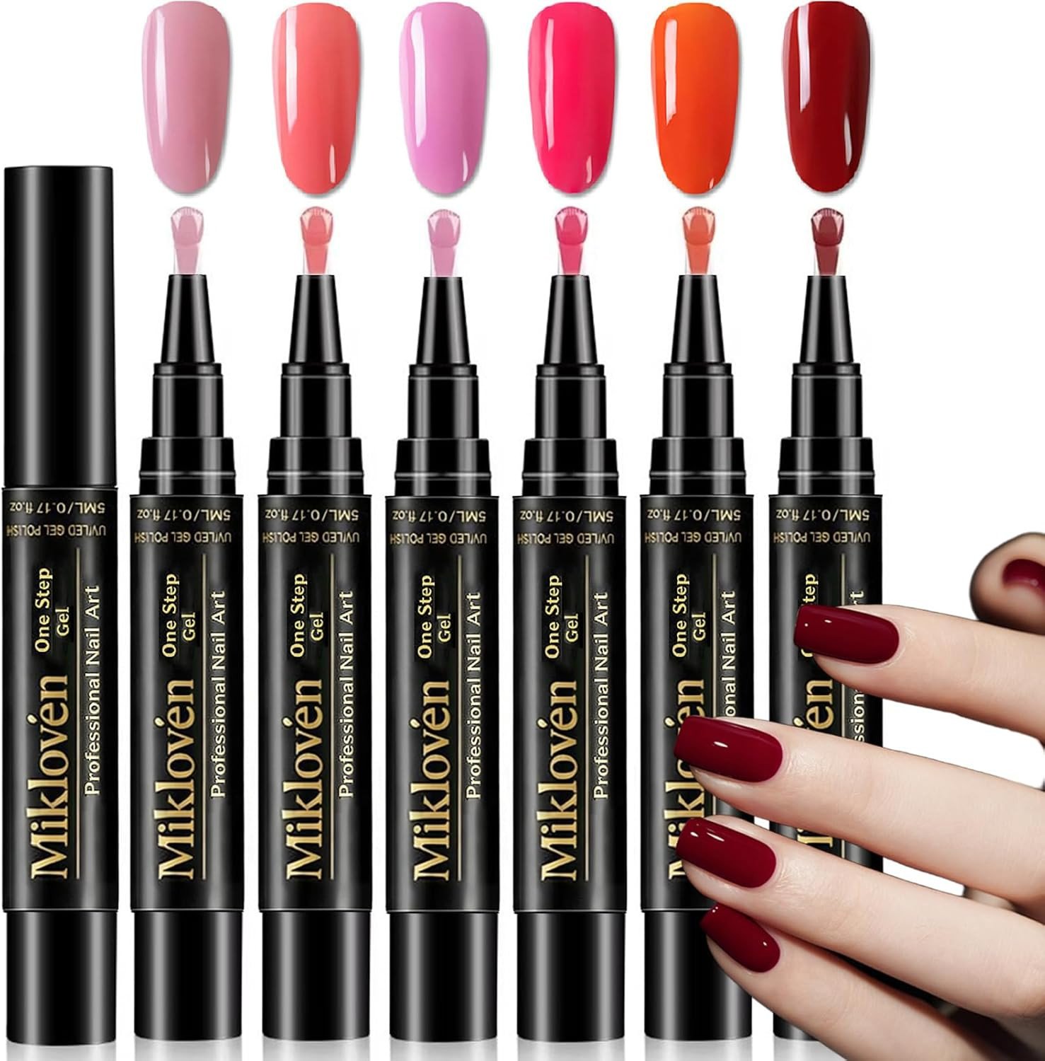 6 Colors 3-In-1 Gel Nail Polish Pen Set – Nude Pink Rose Burgundy Orange Shades,
