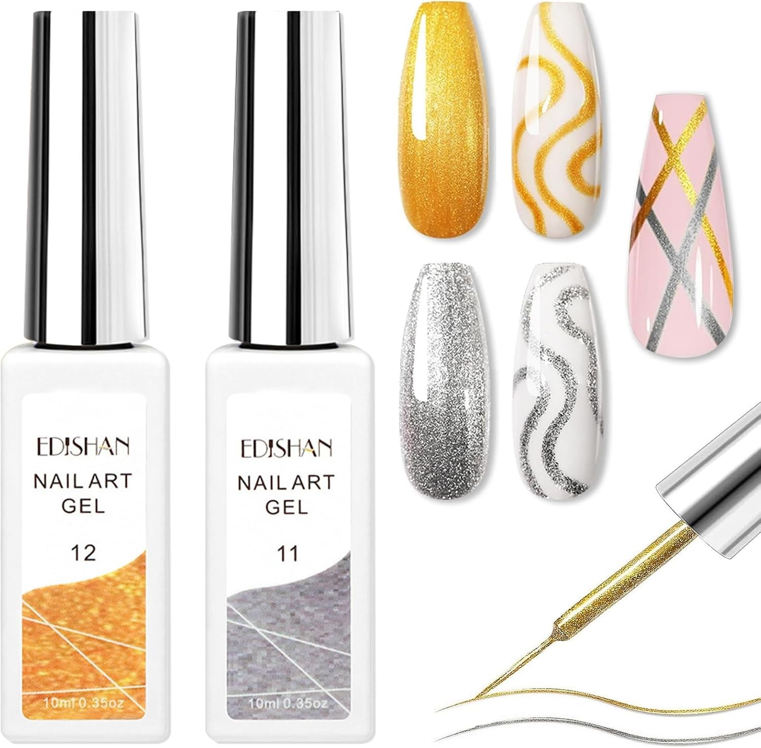 2PCS Liner Gel Nail Polish - Glitter Silver Gold gel nail Polish Pen - Metallic
