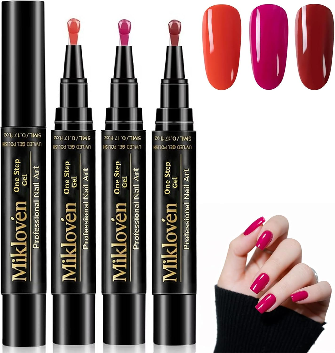 3-in-1 Gel Nail Polish Pen Set, UV-Cured Quick-Dry Formula with Precision Tip,