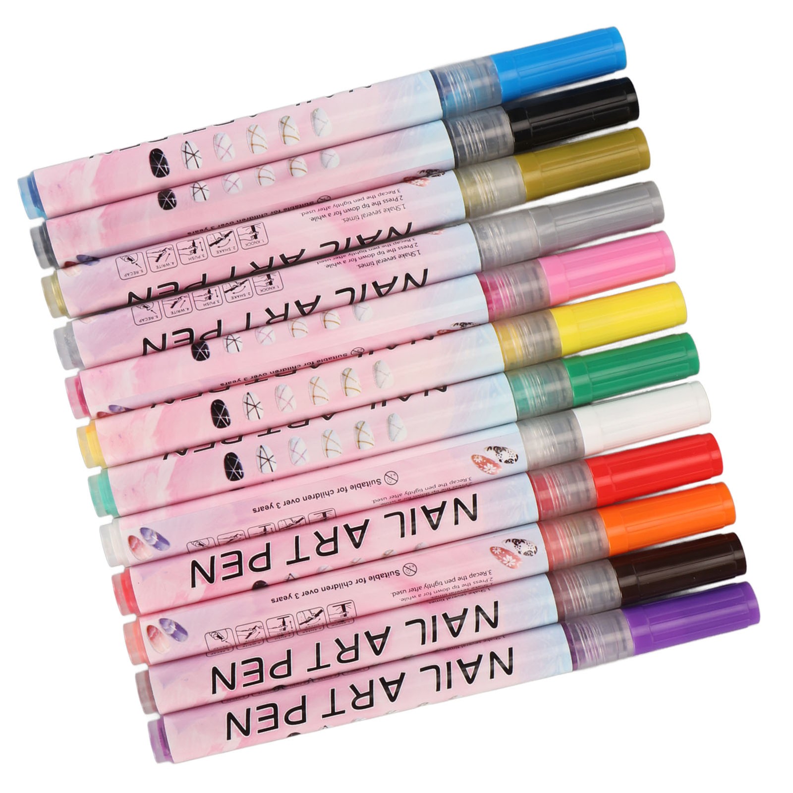 12pcs Nail Polish Pens Multiple Colors Quick Drying DIY Nail Art Pens Nail Paint