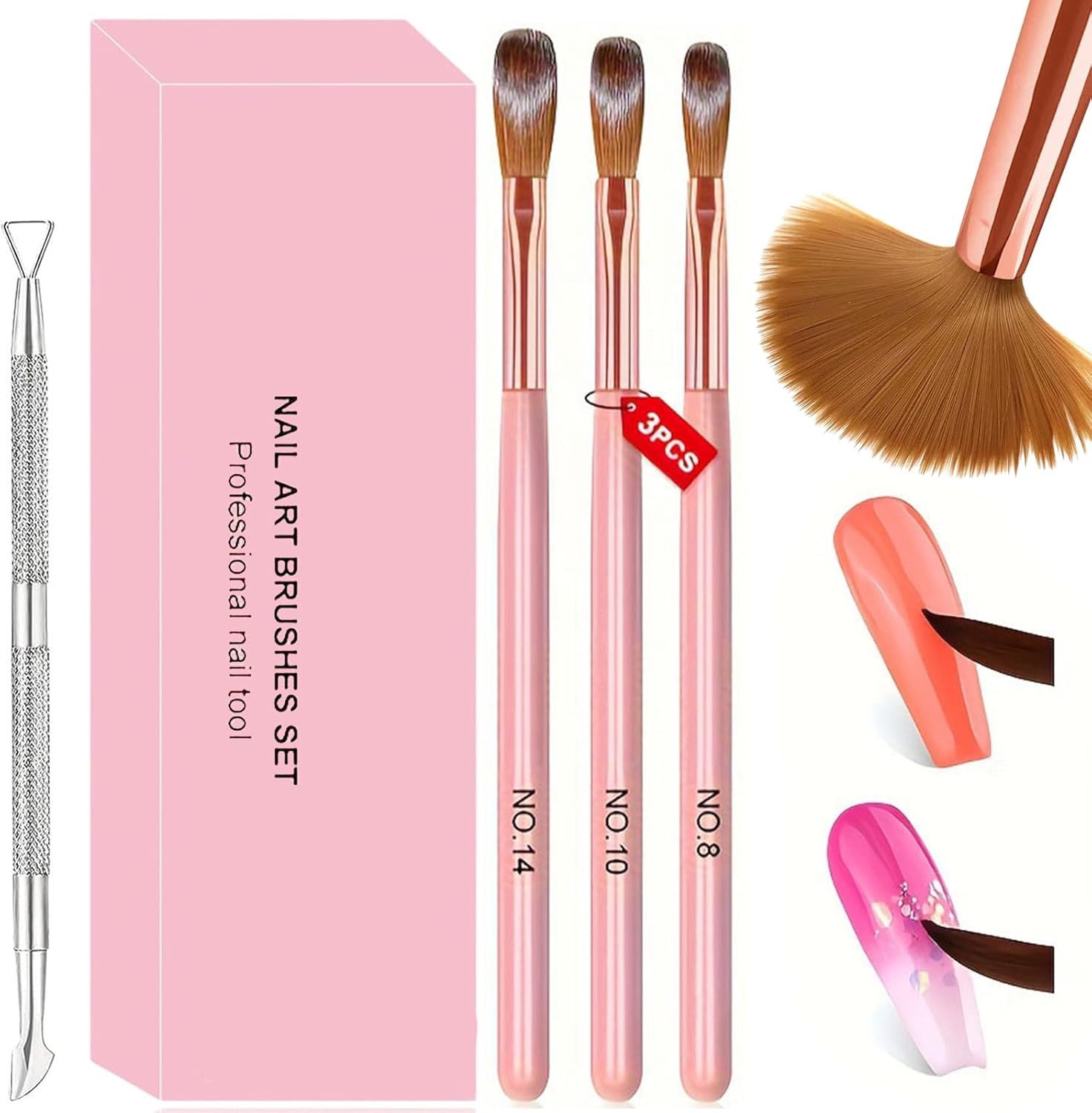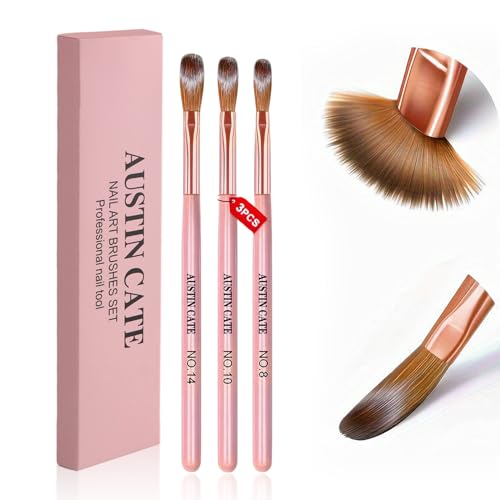 3 Pieces Acrylic Brushes for Nails, Nail Brushes for Nail Art Decoration, Size 8/10/14 Oval Flat Size Nail Brushes, Nail Art Brush for Acrylic Powder for Nail Art Design Painting and DIY