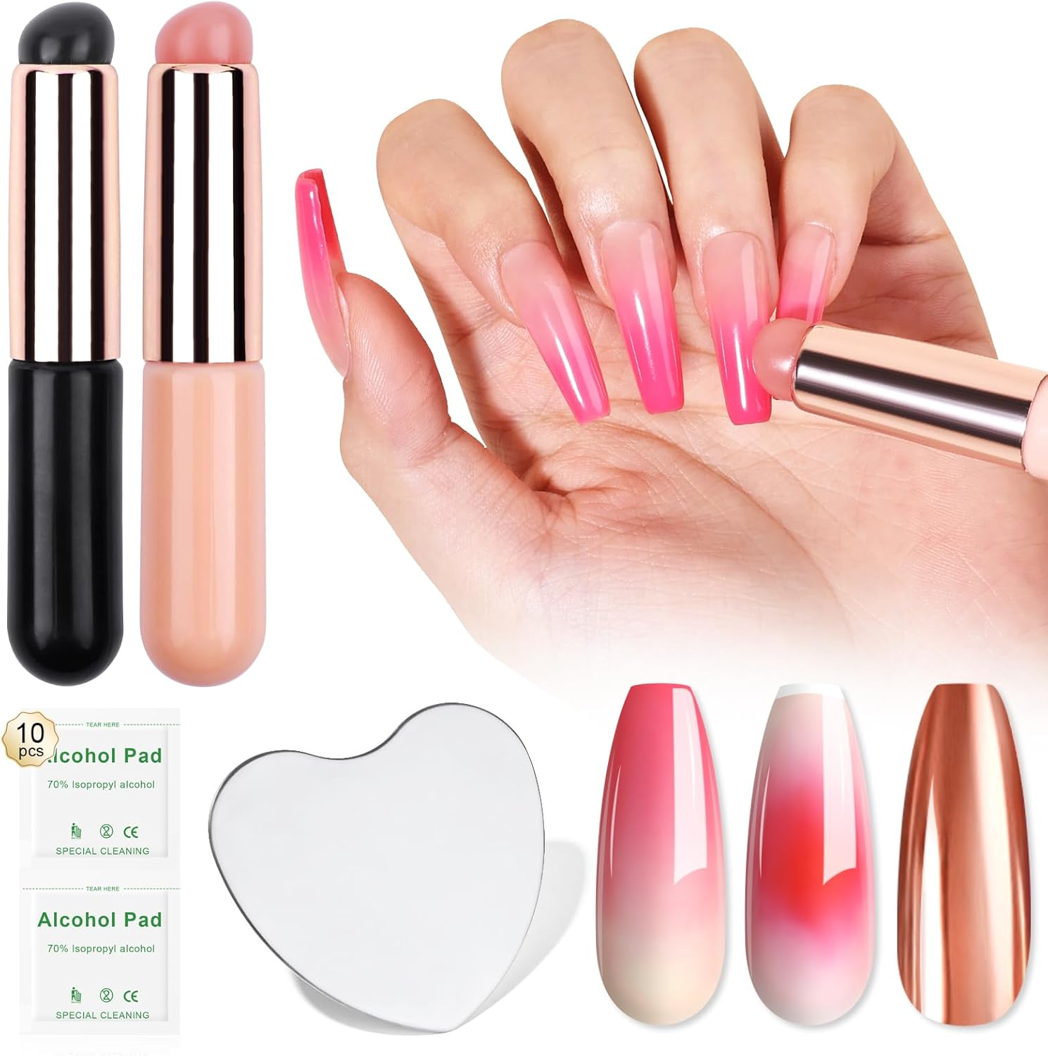 2PCS Silicone Nail Brush: Reusable Chrome Powder Applicator for Ombre Aura Nails