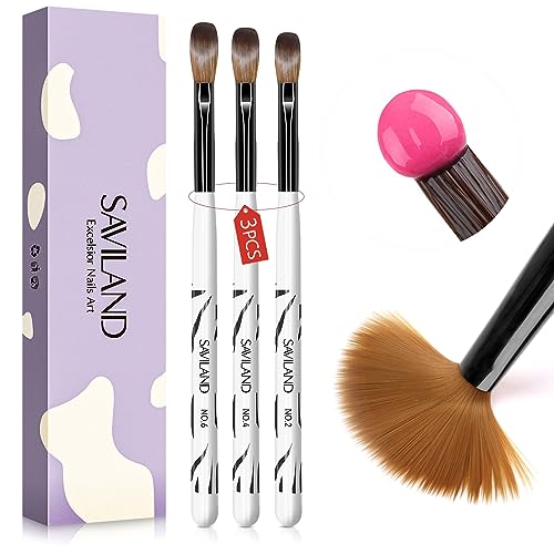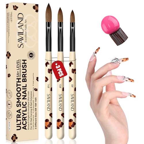 SAVILAND 3 PCS Acrylic Nail Brush 5A+ Level Premium Bristle: Acrylic Brushes for Nails Acrylic Application Smoothly Size 8/10/14 Acrylic Powder Brush Fashion Print Design Nail Extension Nail Studio