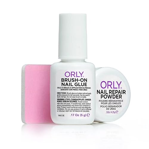 ORLY Nail Rescue Kit for Split & Cracked Nails | Includes Brush-On Nail Glue, Repair Powder & Mini Buffer | 3 Easy Steps for At-Home Nail Repair | Strengthens & Restores Damaged Nails | Easy to Apply