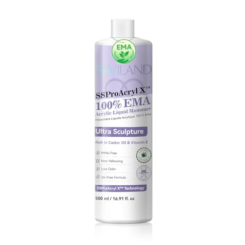 SAVILAND 500ml Monomer Acrylic Liquid: 100% EMA Monomer for Acrylic Nails Extra Large Capacity Low Odor Non-Yellowing for Acrylic Powder Acrylic Nails Application Nail Extension Carving