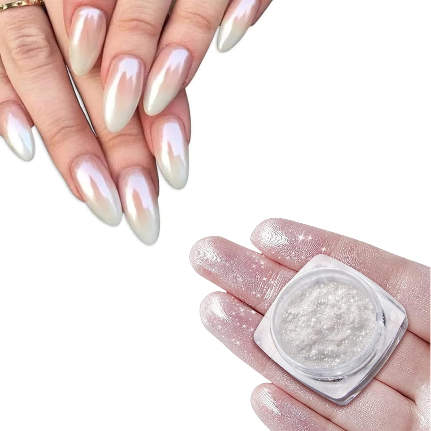 1pcs Chrome Powder for Nails, White Pearl Chrome Nail Power Glossy Iridescent M