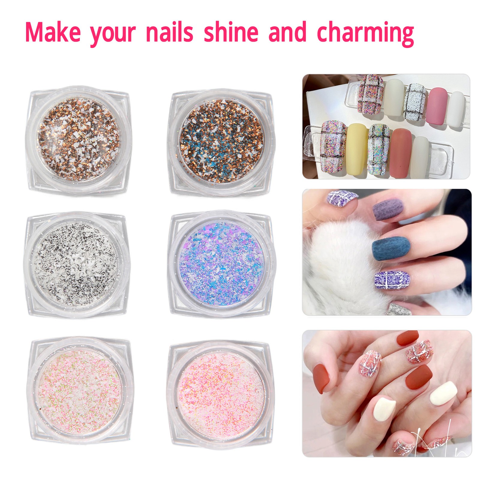 6 Boxes Nail Sugar Powder DIY Glitter Nail Art Wool Powder For Finger Nails Fit