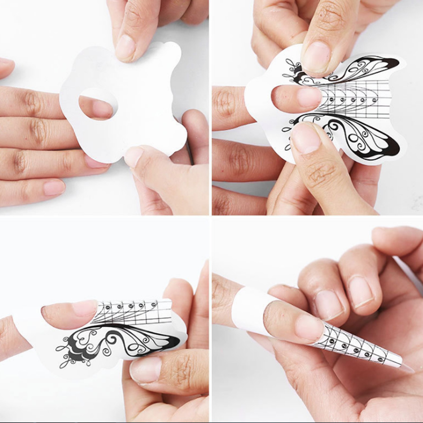 100 Pcs Nail Forms Horseshoe Shaped Butterfly Square Nail Art Form Guide Sticker for Acrylic Nails Gel Nail