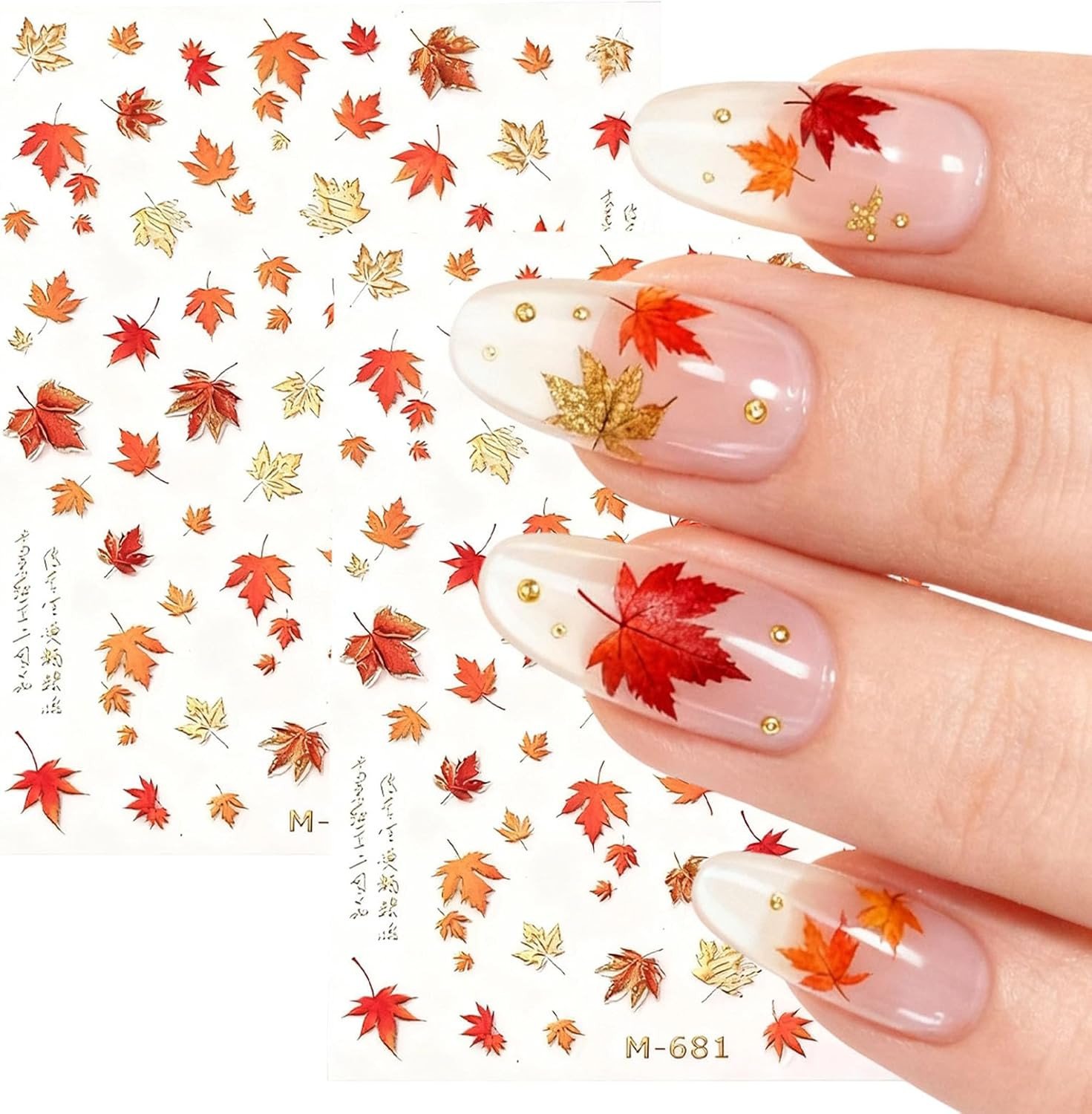 2 Sheets Maple Leaves Nails Sticker 3D Embossed Fall Autumn Nail Art Stickers Se
