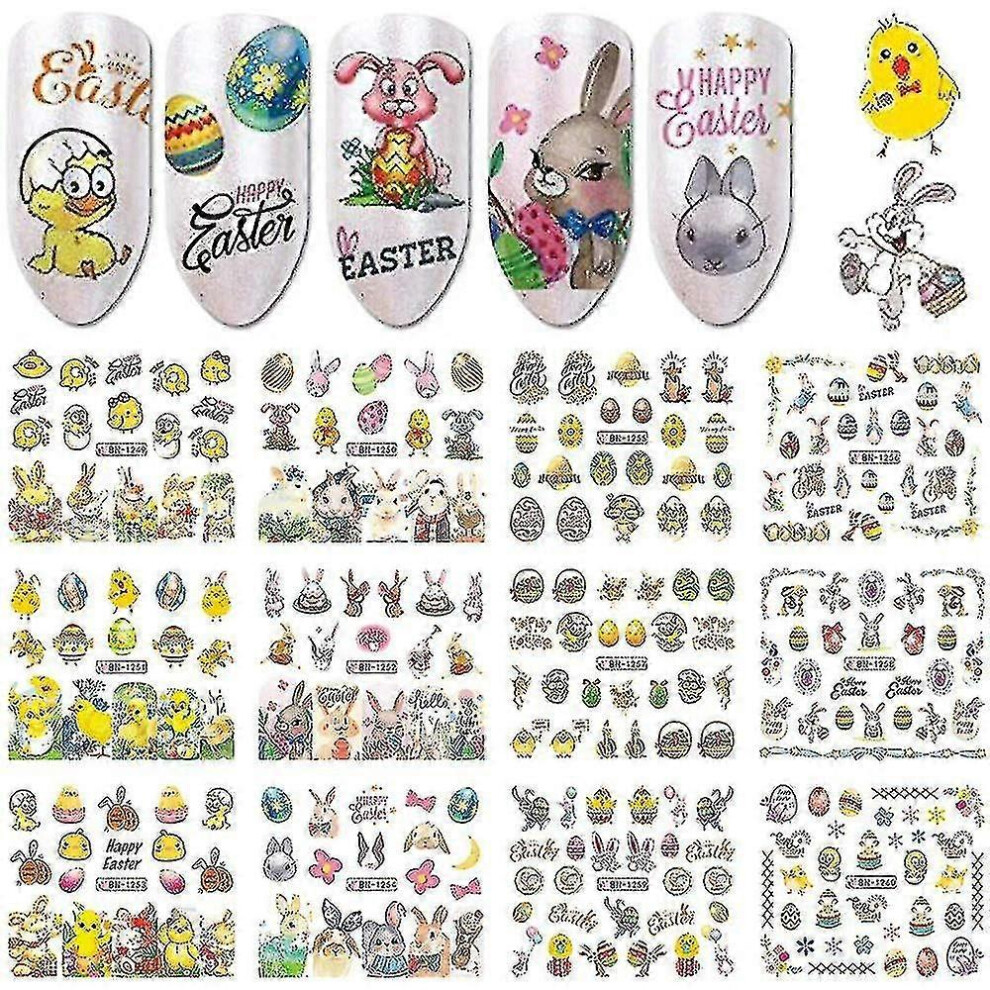 (As show, One size) Easter Nail Art Stickers Set Of 12 Sheets Easter Nails Supplies Sticker Water Transfer Nail Decals Easter Egg