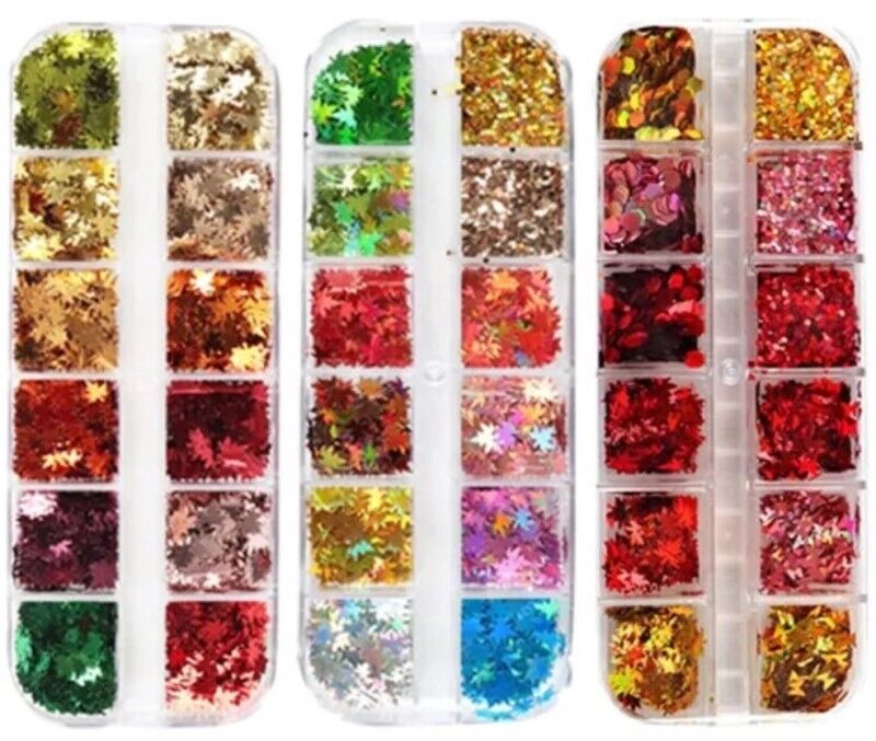 3D Nail Art Sticker Maple Leaves Glitter Flakes Nails Decoration Laser Sequins