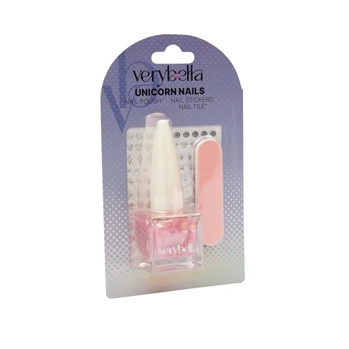 Very Bella Unicorn Nails – Kids’ Nail Set with 15mL Nail Polish, Nail File & Sticker Sheet – Magical Unicorn-Themed Manicure Kit for Girls Aged 6+ – Creative & Safe Dress-Up Fun