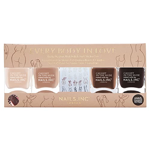 Nails Inc Caught In The Nude Everybody in Love Body Positive Nail Polish And Sticker Set, Pastel, AHA Infused, No Chip, Long Lasting, Quick Dry, Air Dry, Vegan Nail Polish, 14 ML