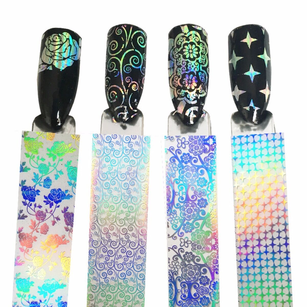 4pcs SET! Transfer Foil Holographic Nail Art Glitter Nails Sticker Silver