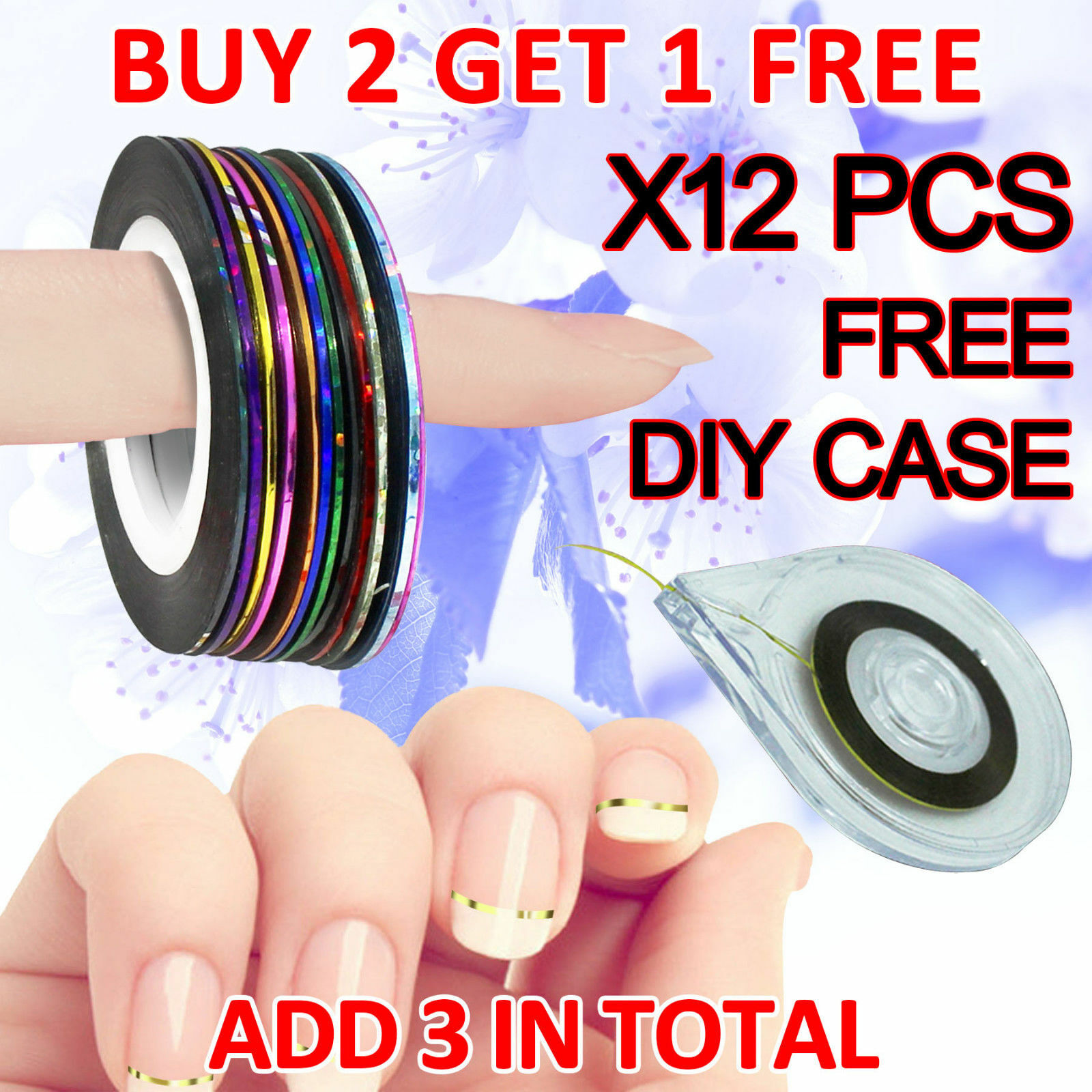 Nail Sticker Roll 12Pc Striping Tape Line Nail Art Tips Acrylic Gel Nails SALE