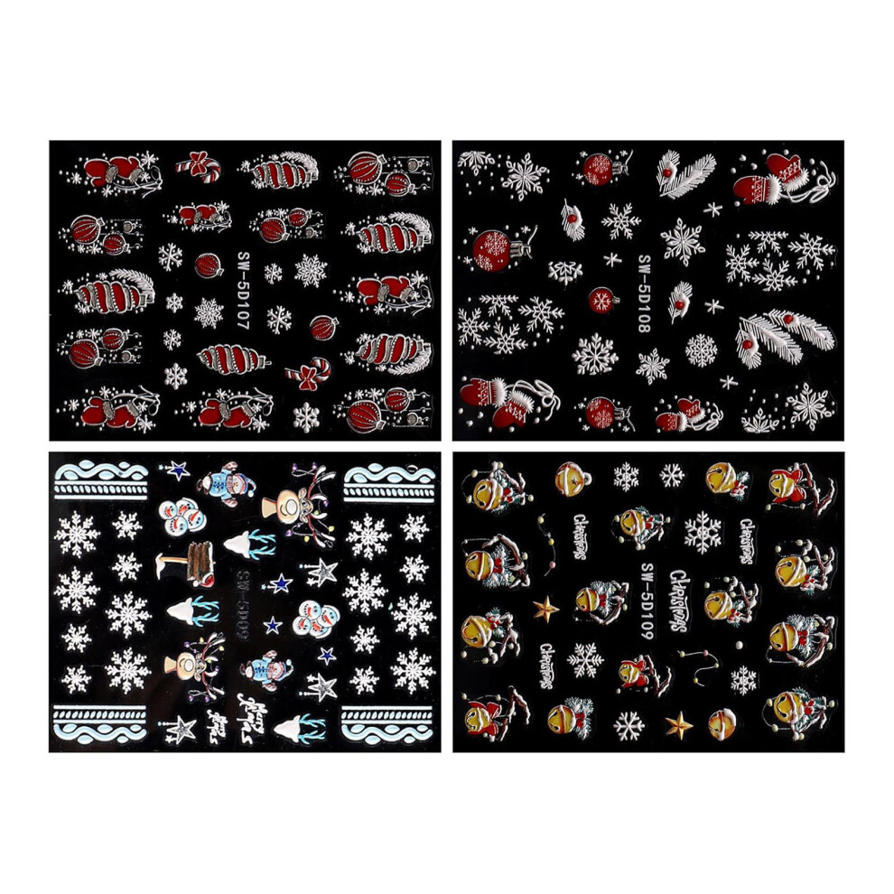 4 Sheets Nails Art Stickers Christmas Nail Sticker Nail Decals