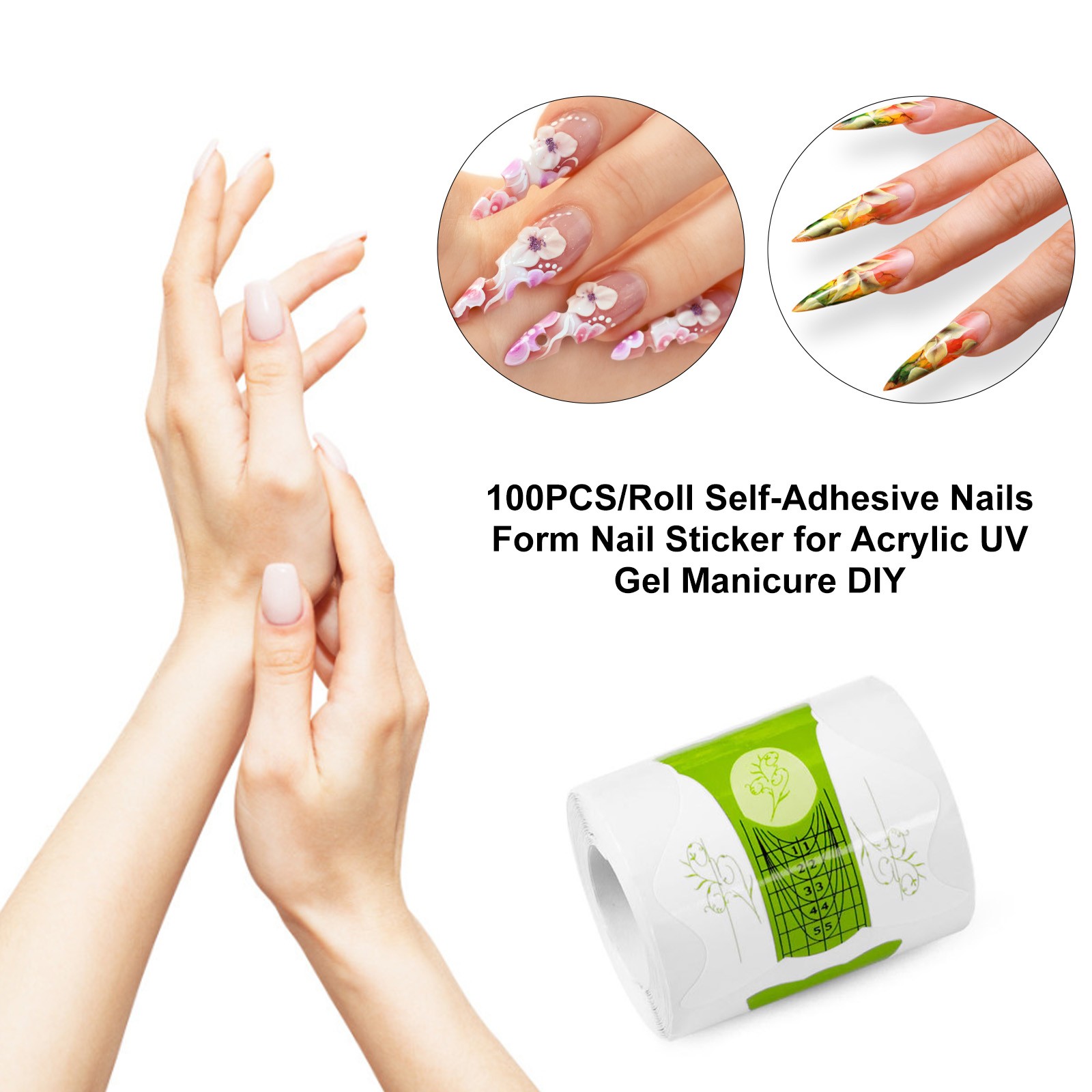 _100PCS Nails Form Nail Sticker Art Tips Guide Sticker Adhesive Nail Form