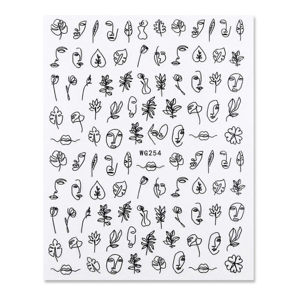 (As show, One size) Nails Sticker Abstract Lady Face Flower Leaves for Professional Nail Experts