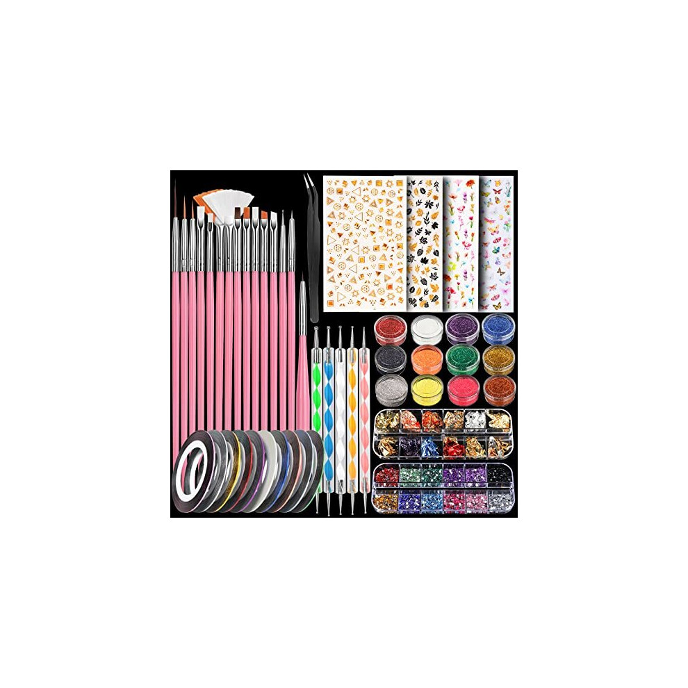 Nail Art Kit with Nail Glitter & Nail Sticker, Teenitor Nail Pen Designer Brush Nail Dotting Tool for Gel Nails Art, Nail Gems Nail Art Striping Tape